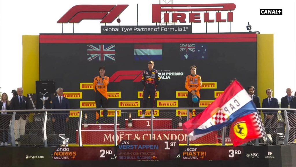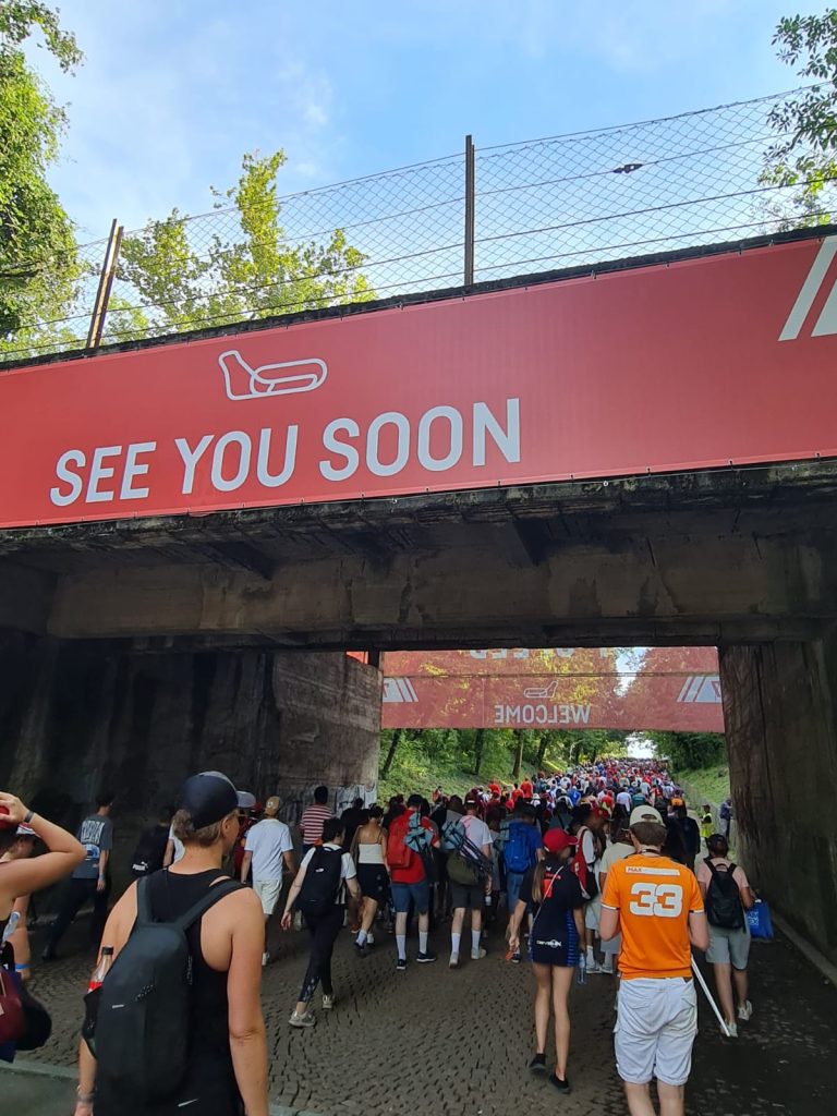 Na de finish zijn wij het circuit opgelopen richting het podium. Heel bijzonder om dat mee te maken met de grote massa Ferrari Tifosi. Toen het Wilhelmus begon te spelen, liepen wij nog richting het podium. De Ferrari Tifosi juichten Max toe. En dat zegt heel veel over de prestaties en grootheid van Max. We konden nog net een glimp van Max vangen op het podium.