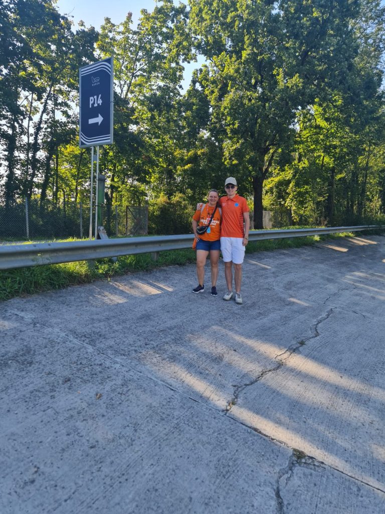 Vrijdagochtend 5 september vlogen we naar Milaan. Na het inchecken in het hotel in Bergamo hebben wij een taxi genomen naar het circuit in Monza. Wij wilden zo veel mogelijk meemaken van de Formule 1 gekte. Die dag hebben we de vrije training 2 van de Formule 1 en de vrije training van de Porsche Cup kunnen zien. Het was nog niet erg druk op de tribunes maar de sfeer zat er al goed in. Het is tenslotte The Temple of Speed. Voordat we teruggingen naar het hotel, zijn we naar de Fan Zone gegaan. Daar was een podium met muziek, merchandise kramen van bijna alle F1 teams, verschillende eettentjes, waterpunten om je fles te vullen en zonnebrand stations…het leek wel een festivalterrein. Echt goed geregeld.