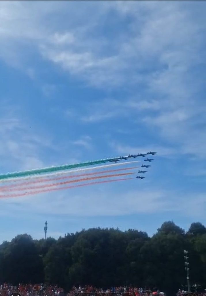 De eerste race van de Formule 3 begon om 8:15 uur in de ochtend. Gevolgd door de Formule 2 race en de Porsche Cup. Naarmate de dag vorderde raakten de tribunes steeds voller en je voelde de energie en de spanning stijgen. Voor de hoofdrace begon, werd het Italiaanse volkslied voorgedragen en toen vlogen de Tricolori straaljagers boven het circuit. Dat was heel indrukwekkend.