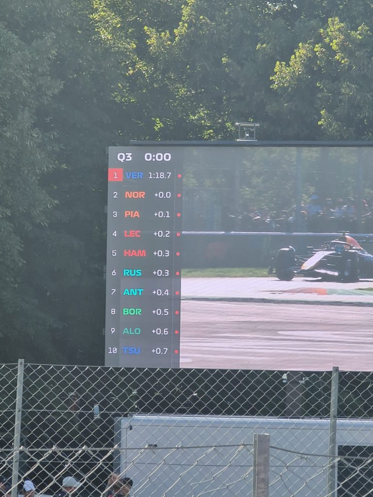In de middag stond de F1 vrije training 3 op het programma en de F2 Sprint Race. En als afsluiter natuurlijk de F1 kwalificatie. En het was een bloedstollende kwalificatie. Leclerc, Verstappen en de McLaren coureurs wisselden elkaar af met de snelste rondes. Maar het laatste woord kwam van Max. De kwalificatieronde van Max was de snelste F1 kwalificatieronde ooit. Met een gemiddelde snelheid van 264,682 km/uur reed hij een recordtijd van 1:18.792. Weer een record die Max op zijn naam schreef. En natuurlijk Pole Position voor zondag.
