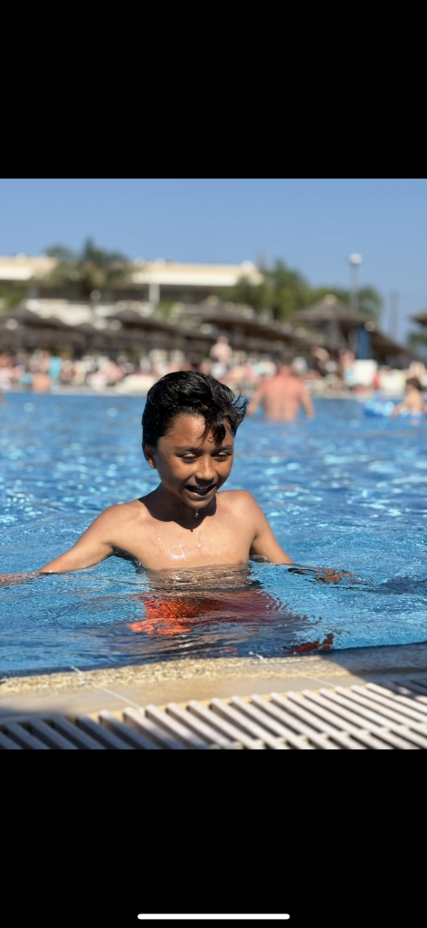 De volgende dagen staan in teken van water , water , water!! Yael heeft 6 dagen lang genoten van de zon, het zwemmen en de ontspanning die we er hadden! Op de tweede dag zou het dan eindelijk zover zijn en gingen we naar het strand… wat denk je….. windkracht hoog en golven ook! We durfden het niet aan! Gelukkig op dag 5 een ander rustig stuk strand opgezocht en kon hij eindelijk zwemmen in blauw water.