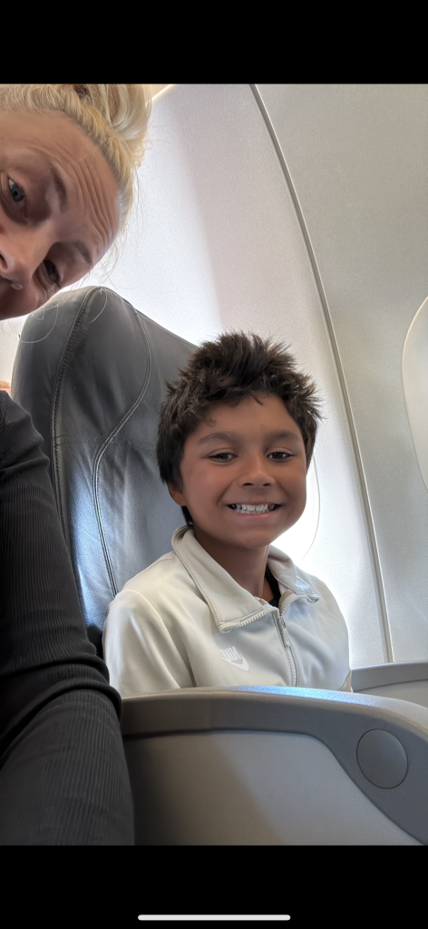 Een kleine week voor we zouden vertrekken, werd hij ziek. Zullen de spanningen zijn of een goede verkoudheid…. het was niet zeker of we konden gaan… tot de laatste nacht…en gelukkig na veel gembershotjes van mama… koortsvrijen op energie ! We kunnen gaan!!!